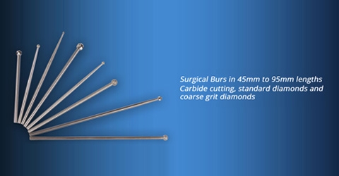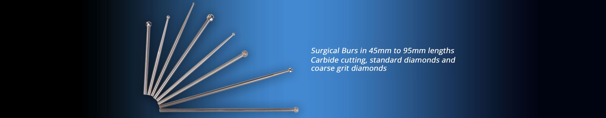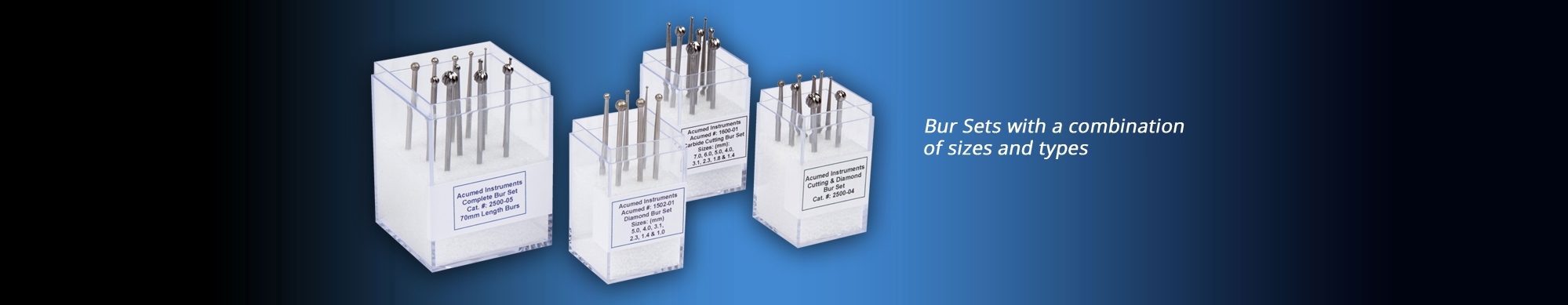 Standard .093″ diameter burs in carbide cutting, diamond and coarse grit diamonds.