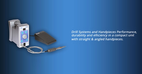Powerful, reliable and cost efficient drill system. Straight and angled handpieces for the drill accept standard burs.